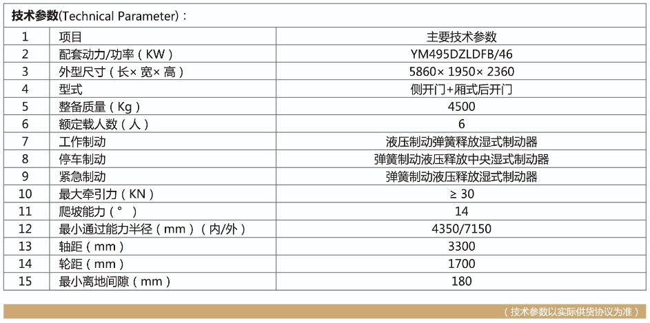 WC7RJJ防爆救護(hù)車配套YM495DZLDFB國(guó)三防爆柴油機(jī),驅(qū)動(dòng)方式為后輪驅(qū)動(dòng),機(jī)械傳動(dòng),液壓助力方向,防爆電啟動(dòng),工作制動(dòng),駐車和緊急制動(dòng)相互獨(dú)立,保證車輛運(yùn)行的安全性;防爆救護(hù)車適用于井下?lián)岆U(xiǎn)救援作業(yè),具有駕乘舒適,適應(yīng)能力強(qiáng)的特點(diǎn)。