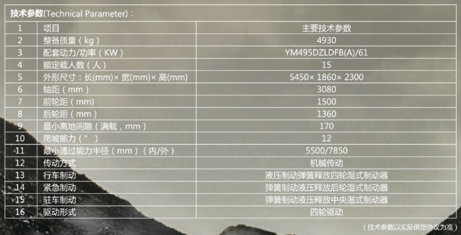 WC15R防爆柴油機(jī)無軌,膠輪機(jī)車配套我公司生產(chǎn)的YM495DZLDFB(A)防爆柴油機(jī)為動(dòng)力、機(jī)械傳動(dòng)、全液壓濕式制動(dòng),液壓助力轉(zhuǎn)向,后開門全封閉運(yùn)人車廂,同時(shí)配有安全門和安全鎖,整車配有減震系統(tǒng),乘坐舒適。適用于煤礦井下載人作業(yè)?!盵”型斷面縱梁,機(jī)車為平頭,采用煤礦工程車專業(yè)加強(qiáng)底盤,具有結(jié)構(gòu)緊湊、駕駛舒適、乘坐方便、爬坡能力強(qiáng)、運(yùn)輸效率高等優(yōu)點(diǎn)。