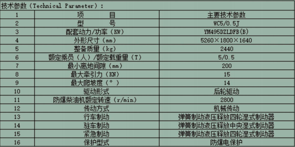 WC5/0.5J防爆柴油機(jī)無軌膠輪車是一種以防爆柴油機(jī)為動(dòng)力,機(jī)械傳動(dòng),四輪驅(qū)動(dòng)的煤礦井下無軌運(yùn)人機(jī)械,主要適用于巷道斷面不小于3×4米。坡度不大于15°,煤礦井下運(yùn)輸作業(yè)車,機(jī)車為皮卡箱式結(jié)構(gòu),具有結(jié)構(gòu)緊湊,操作方便,轉(zhuǎn)彎半徑小,爬坡能力強(qiáng),運(yùn)輸效率高等優(yōu)點(diǎn)。